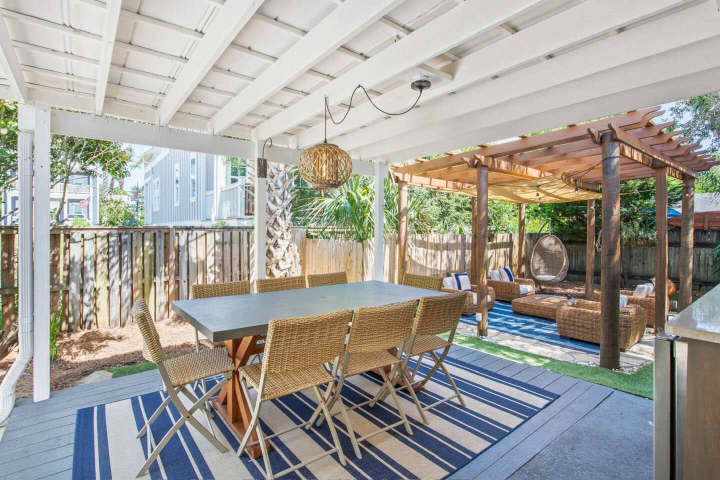Additional Info & House Rules – The owners have three similar homes on the same street, great for groups traveling together. Please inquire if you’d like to book more than one. – A starter supply of essentials is provided: toilet paper, paper towels, trash bags, dishwasher pods, and laundry pods. – All payments are handled through Airbnb. – Check-in: 4:00 PM | Check-out: 9:00 AM Policies: – Smoking is not permitted anywhere on the property. – Renters must be 25 or older. Guests under 25 must be accompanied by a parent or legal guardian. – Only the primary renter (25+) is allowed to operate the golf cart. Golf Cart Rules: – Do not drive the golf cart past Seaside to the east or beyond the end of 30A to the west. – Guests are responsible for keeping the battery charged. Any issues caused by battery failure due to not charging will be billed to the guest. Liability & Damages: – Any damage during your stay will be the responsibility of the booking guest. – The owner and host are not liable for any injury or damage resulting from use of the golf cart, hot tub, bikes, or other provided amenities.