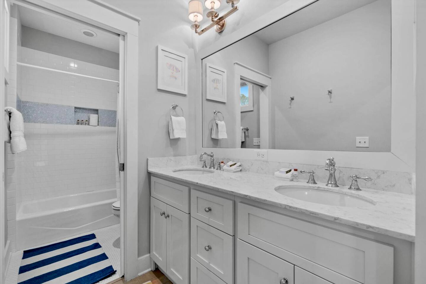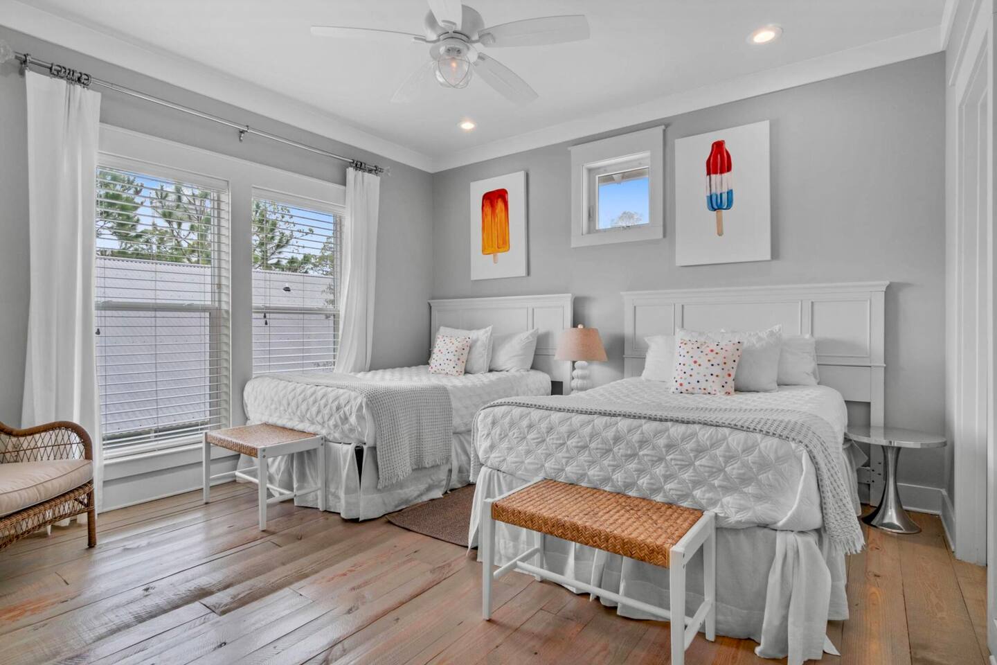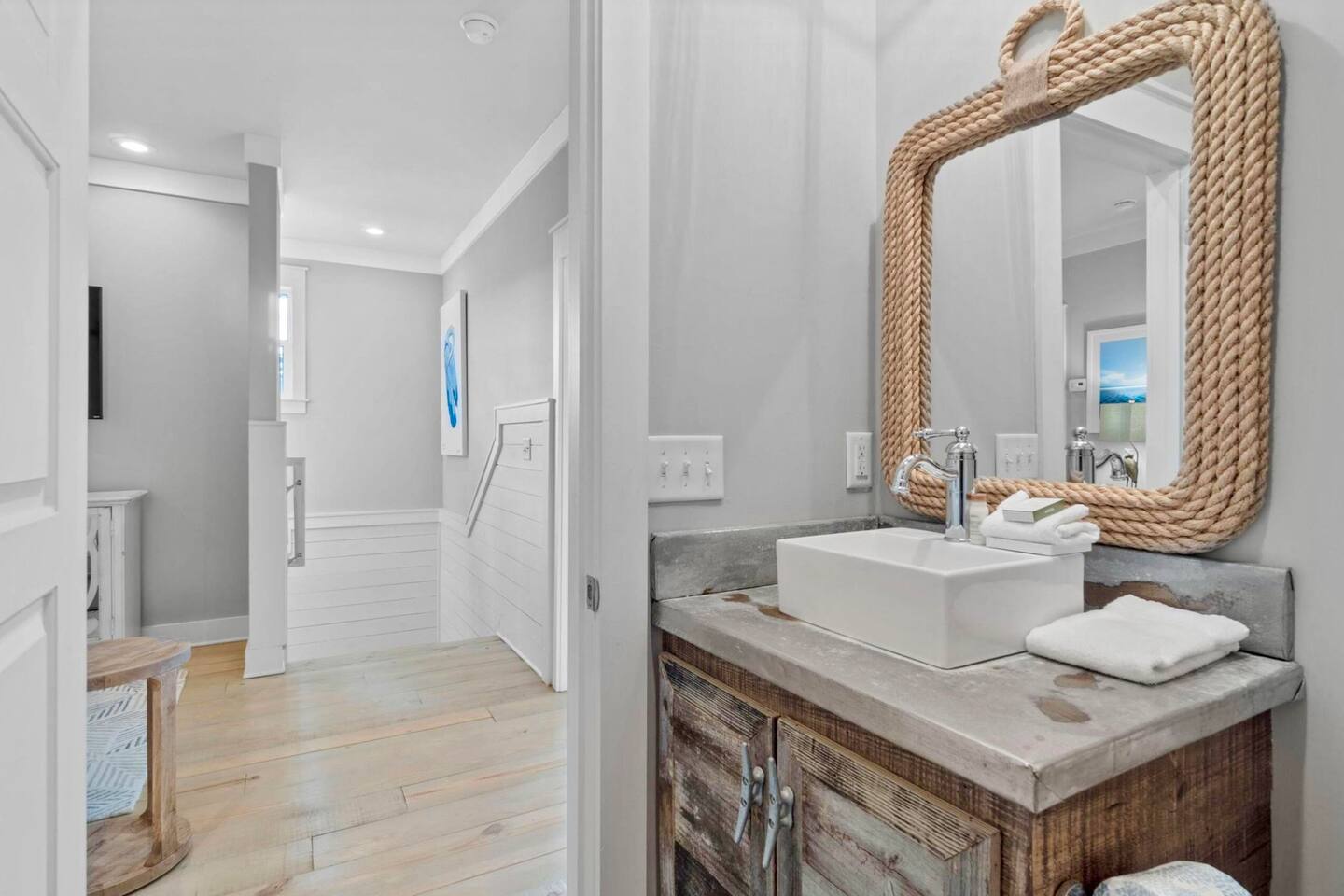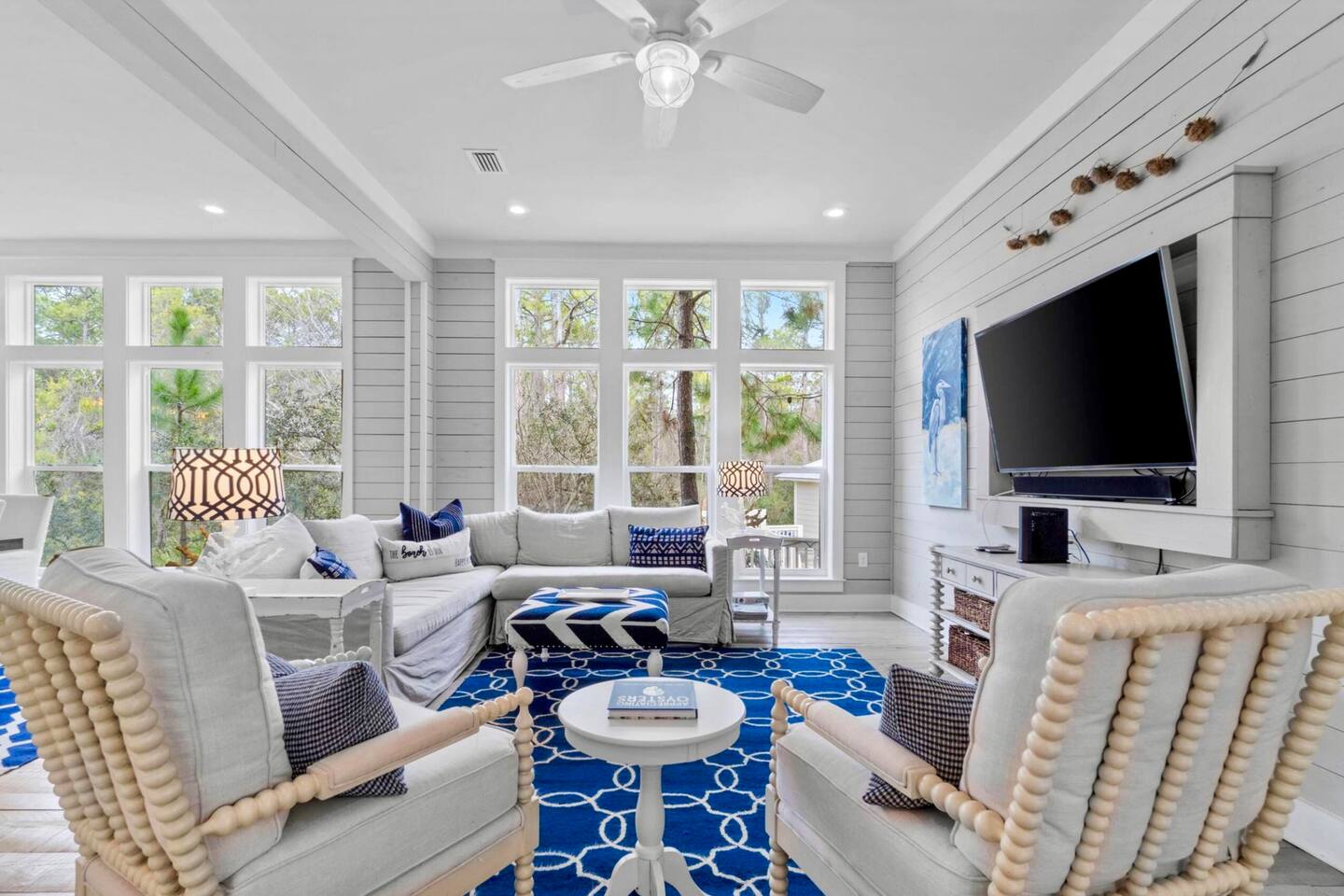 Tucked away on a quiet cul-de-sac, the house sits on a wooded nature trail surrounded by nature preserve perfect for exploring in the time between beach days and poolside fun! Main Floor A gracious entry leads to the open concept living, dining and kitchen area flooded with natural light with floor to ceiling windows. The dining table, positioned to separate the kitchen and living area, easily accommodates 8 guests. The chef's kitchen is large and open, providing enough room for cooking and entertaining! You will also find a half bath on the main floor as well as a walk in laundry room. The main floor of the home conveniently offers a KING room with an ensuite bath and walk in closet. From the main floor porch, take the stairs down to find the outdoor dining and grill area backing up to the preserve and nature trail. Second Level You will find a second living space and half bath. Off of the living room area you will find a bunk room with trundle bed and walk in closet, guest room with DOUBLE QUEEN and ensuite bathroom and walk in closet. Master Suite with KING Bed and ensuite bathroom, walk in closet and private screened balcony. This home also provides your an outdoor dining area and grill area, just off the back porch and next to the wooded preserve and nature trail. This highly desirable community is perfectly positioned between Rosemary Beach and Alys Beach making it an ideal location to walk or bike, and to explore all that 30A has to offer with shopping, dining and entertainment right at your doorstep. Book it!