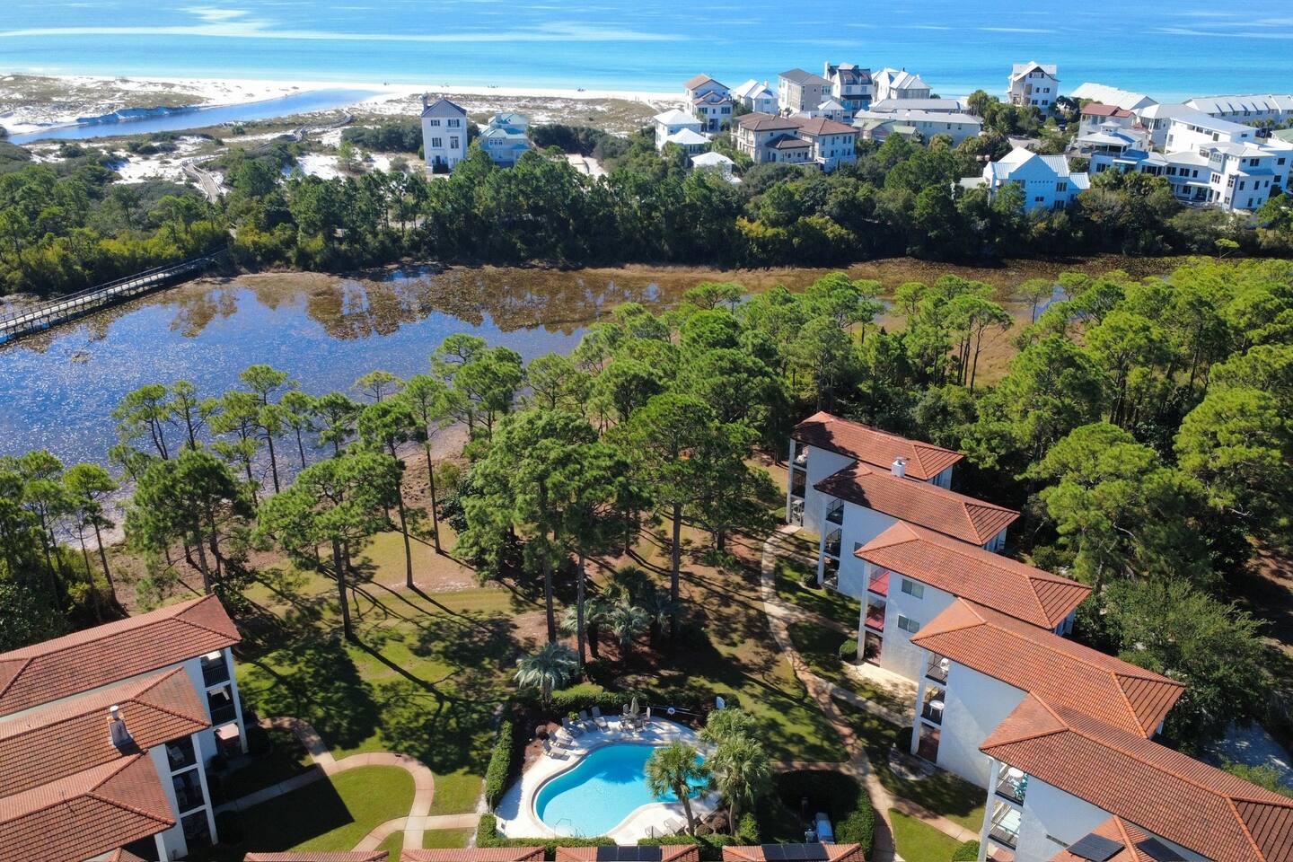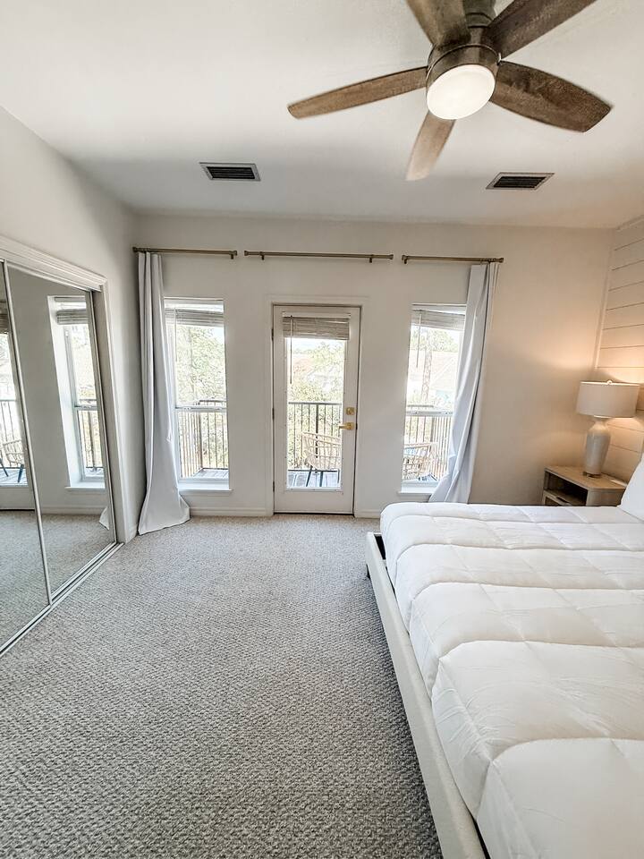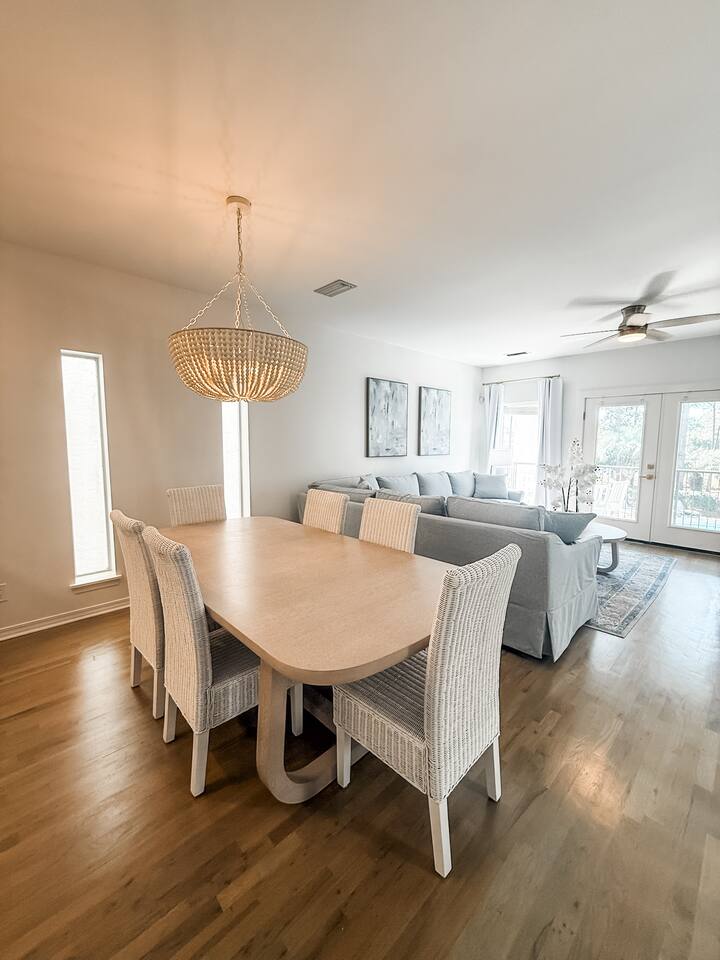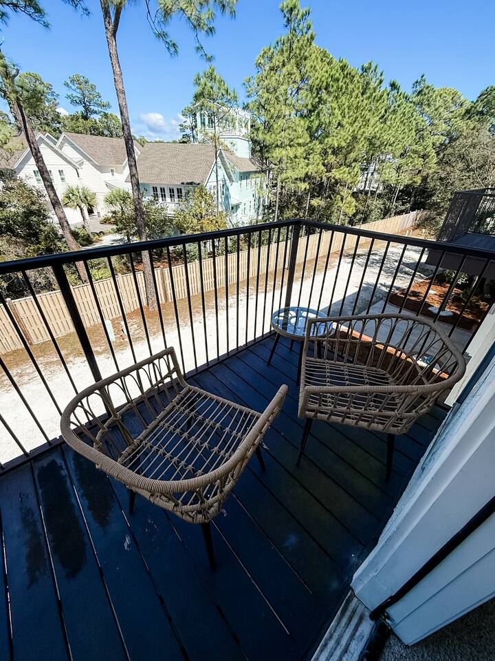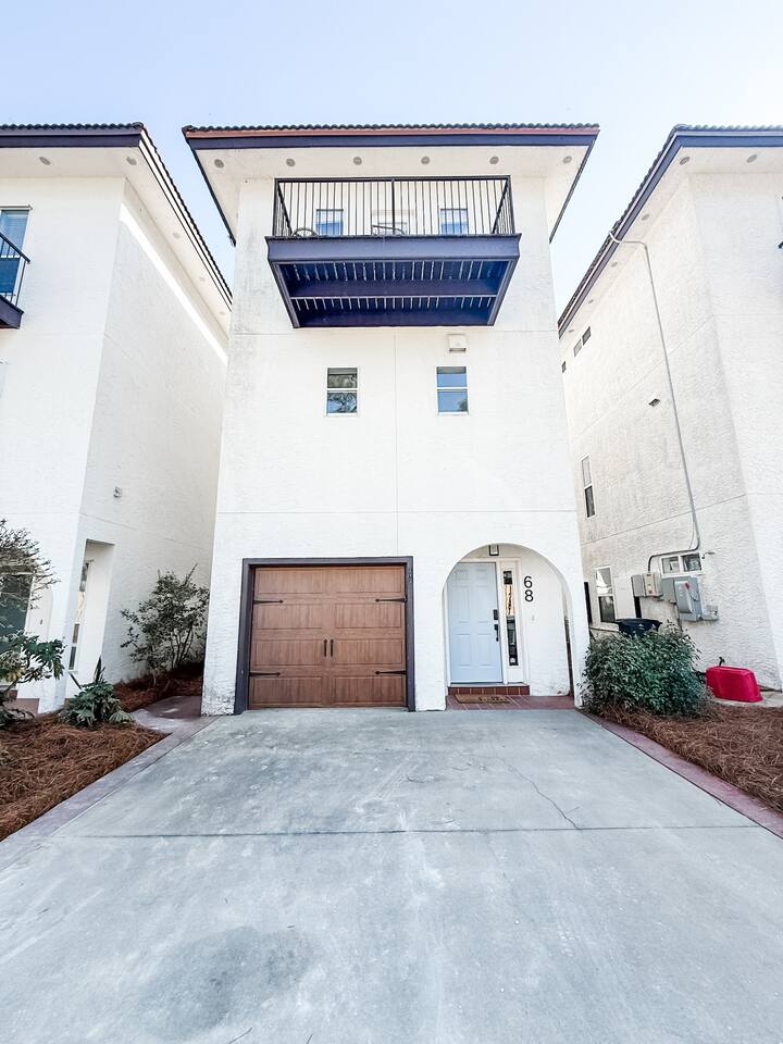 The Layout Third Floor – Private King Suites The top floor features two spacious king suites, each designed for comfort and privacy. • Two King bedrooms with private en-suite bathrooms • Private balcony for each king suite • Comfortable bedding and ample storage • Smart TVs in each bedroom These balconies are perfect for morning coffee or relaxing in the evening. ⸻ Second Floor – Main Living Area The main level is bright and open, designed for gathering after a day at the beach. • Open concept living room with fireplace • Large Smart TV for streaming • Dining table seating for 6 • Kitchen island seating for 4 • Fully equipped kitchen with stainless steel appliances • Washer and dryer • Convenient half bathroom Step outside to the outdoor balcony on this level, a great place to enjoy the coastal breeze. ⸻ First Floor – Bunk Room + Outdoor Access The first floor offers additional sleeping space and easy access to outdoor amenities. • Custom bunk room • Full bathroom • Walkout patio • Private hot tub (available beginning April 1) • Direct access to the community pool This level works especially well for kids or additional guests. ⸻ Outdoor Living • Overlooks the community pool • Private hot tub available starting April 1 • Multiple balconies and outdoor spaces • Easy walk or bike ride to the beach ⸻ Beach Essentials Included Your beach days are covered. We provide: • 6 beach chairs • 2 beach umbrellas • 10 beach towels Just grab the gear and head to the beach. ⸻ Optional Add-Ons Golf Cart One of the best ways to explore 30A. • $395 flat rate per stay (same price whether one night or a full week) • Stored conveniently in the one-car garage Most guests use the garage for golf cart storage. ⸻ Beach Cruiser Bikes Cruise along the scenic 30A bike path. • $10 per bike per day Perfect for beach runs, coffee trips, or exploring nearby beach communities. ⸻ Parking • One-car garage • Additional driveway parking available • Garage commonly used for golf cart storage ⸻ Location Located at 68 Mar-A-Lago, Santa Rosa Beach, Mingo at Mar-A-Lago places you in a quiet section of Scenic Highway 30A with easy access to the beach and nearby coastal towns. Nearby highlights include: • Quiet beach days at Walton Dunes • Scenic biking along 30A • Local restaurants and cafés • Boutique shopping • Coastal dune lakes and nature trails Everything that makes 30A one of Florida’s most sought-after beach destinations is just minutes away.