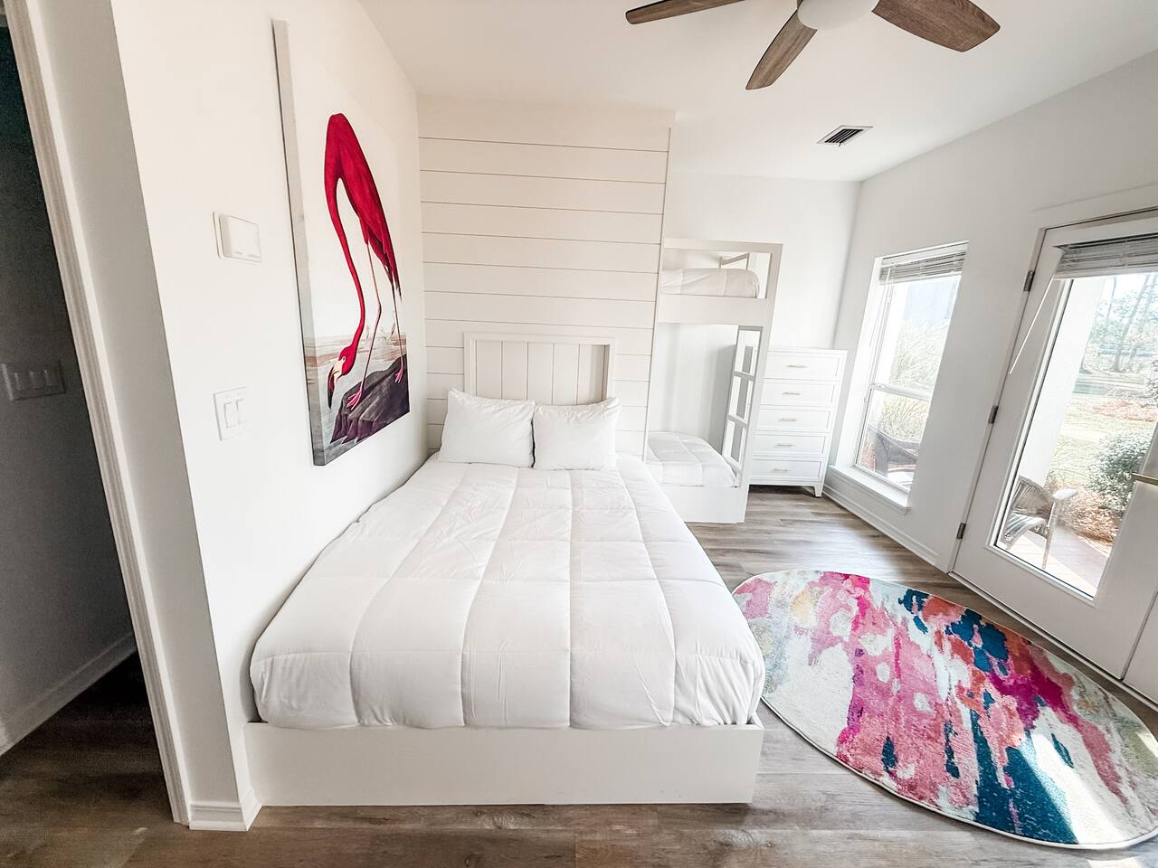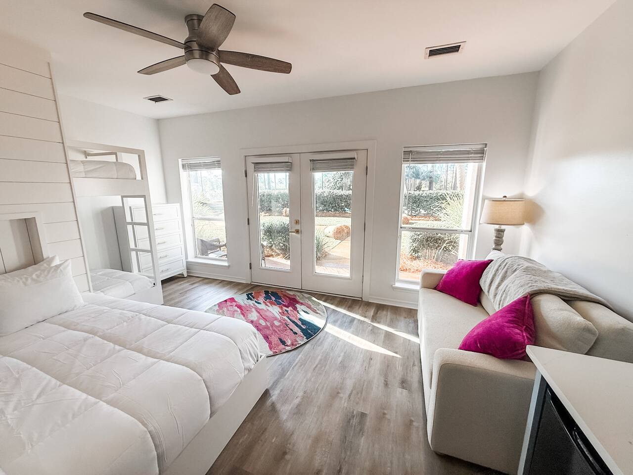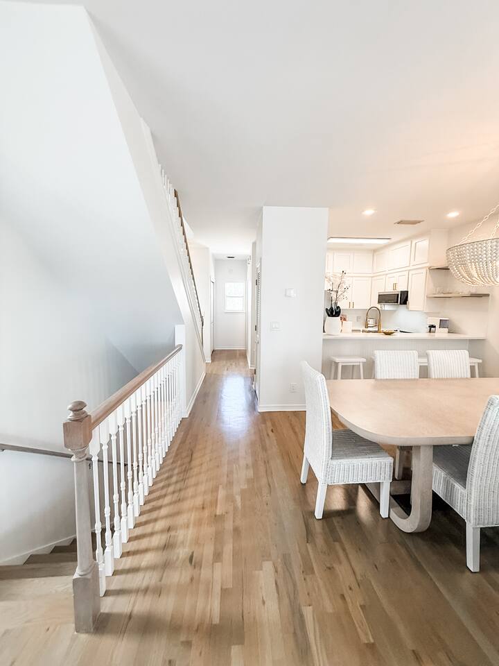 The Layout Third Floor – Private King Suites The top floor features two spacious king suites, each designed for comfort and privacy. • Two King bedrooms with private en-suite bathrooms • Private balcony for each king suite • Comfortable bedding and ample storage • Smart TVs in each bedroom These balconies are perfect for morning coffee or relaxing in the evening. ⸻ Second Floor – Main Living Area The main level is bright and open, designed for gathering after a day at the beach. • Open concept living room with fireplace • Large Smart TV for streaming • Dining table seating for 6 • Kitchen island seating for 4 • Fully equipped kitchen with stainless steel appliances • Washer and dryer • Convenient half bathroom Step outside to the outdoor balcony on this level, a great place to enjoy the coastal breeze. ⸻ First Floor – Bunk Room + Outdoor Access The first floor offers additional sleeping space and easy access to outdoor amenities. • Custom bunk room • Full bathroom • Walkout patio • Private hot tub (available beginning April 1) • Direct access to the community pool This level works especially well for kids or additional guests. ⸻ Outdoor Living • Overlooks the community pool • Private hot tub available starting April 1 • Multiple balconies and outdoor spaces • Easy walk or bike ride to the beach ⸻ Beach Essentials Included Your beach days are covered. We provide: • 6 beach chairs • 2 beach umbrellas • 10 beach towels Just grab the gear and head to the beach. ⸻ Optional Add-Ons Golf Cart One of the best ways to explore 30A. • $395 flat rate per stay (same price whether one night or a full week) • Stored conveniently in the one-car garage Most guests use the garage for golf cart storage. ⸻ Beach Cruiser Bikes Cruise along the scenic 30A bike path. • $10 per bike per day Perfect for beach runs, coffee trips, or exploring nearby beach communities. ⸻ Parking • One-car garage • Additional driveway parking available • Garage commonly used for golf cart storage ⸻ Location Located at 68 Mar-A-Lago, Santa Rosa Beach, Mingo at Mar-A-Lago places you in a quiet section of Scenic Highway 30A with easy access to the beach and nearby coastal towns. Nearby highlights include: • Quiet beach days at Walton Dunes • Scenic biking along 30A • Local restaurants and cafés • Boutique shopping • Coastal dune lakes and nature trails Everything that makes 30A one of Florida’s most sought-after beach destinations is just minutes away.