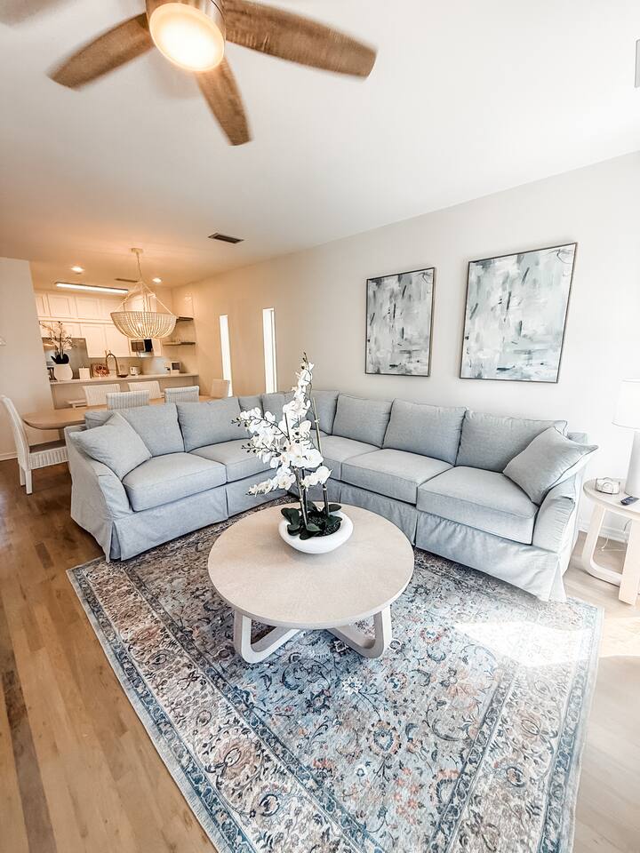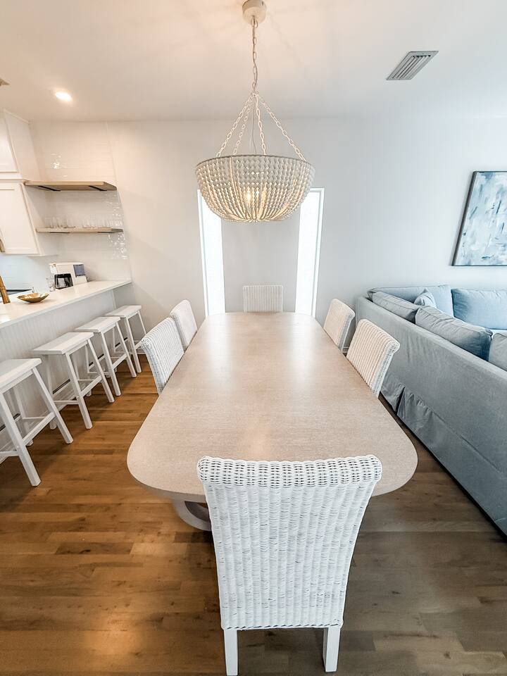 Mingo at Mar-A-Lago is a newly renovated 3BR/3.5BA 30A retreat overlooking the pool and a short walk or bike ride to the quiet Walton Dunes Beach Access. Features two king suites with private balconies, a custom bunk room, Smart TVs throughout, open living area with fireplace, and second-floor balcony. Private hot tub (April 1). Beach gear included. Optional golf cart $395 per stay and bikes available. Beach essentials includes: beach chairs, umbrellas, beach towels, speaker and backpack cooler