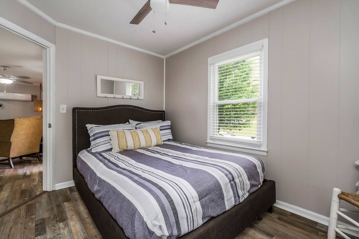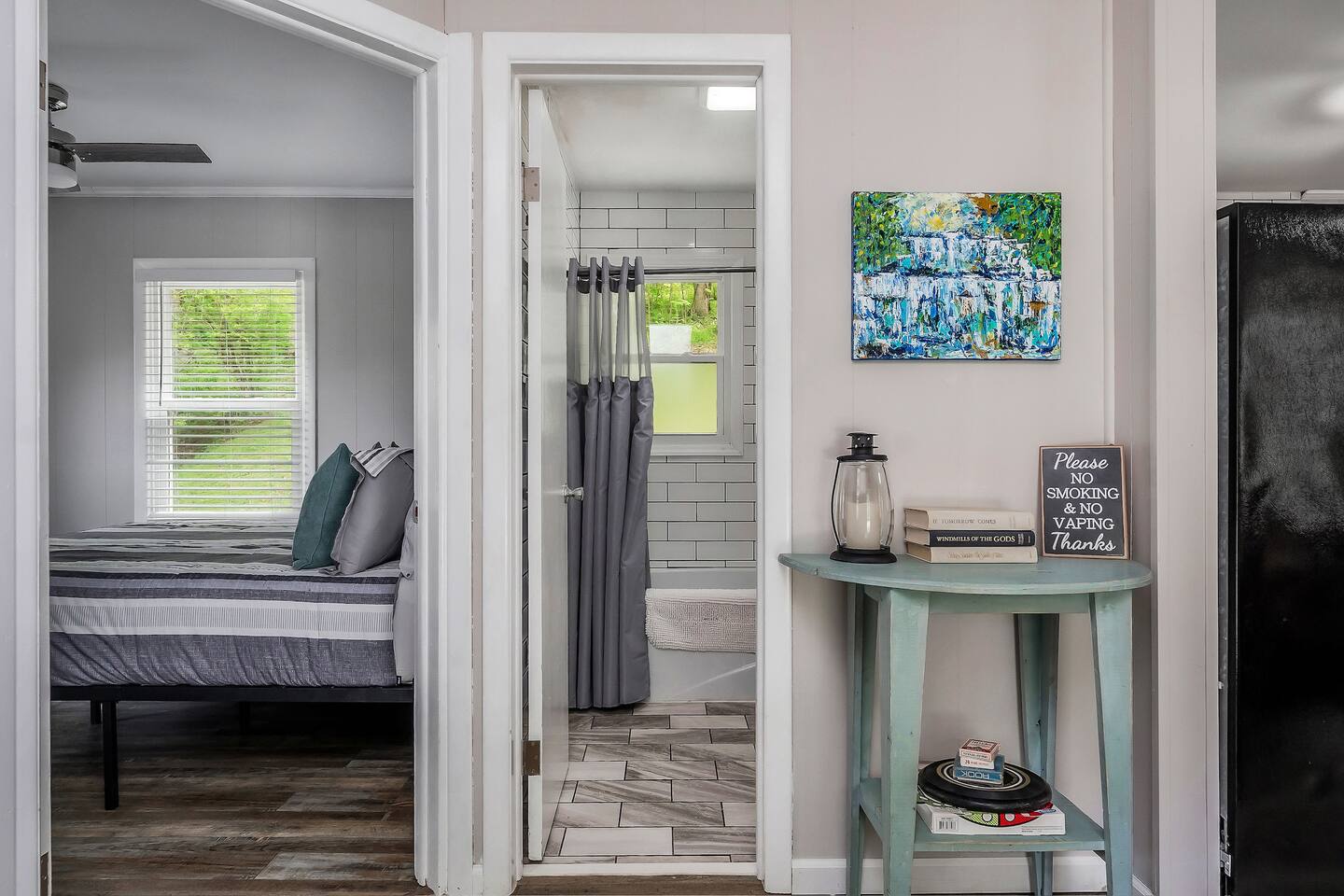 Sunfish Cottage is a cozy escape just a 7-minute walk to Hidden Harbor Marina on Center Hill Lake. Enjoy two queen bedrooms, a full bath, a stocked kitchen, and a comfy living area with TV. Relax outdoors with a fire pit, grill, patio seating, and an outdoor shower. Nestled in a peaceful wooded setting with A/C, heat, fast WiFi, and ample boat parking, it’s perfect for couples, small families, and lake-day adventures.