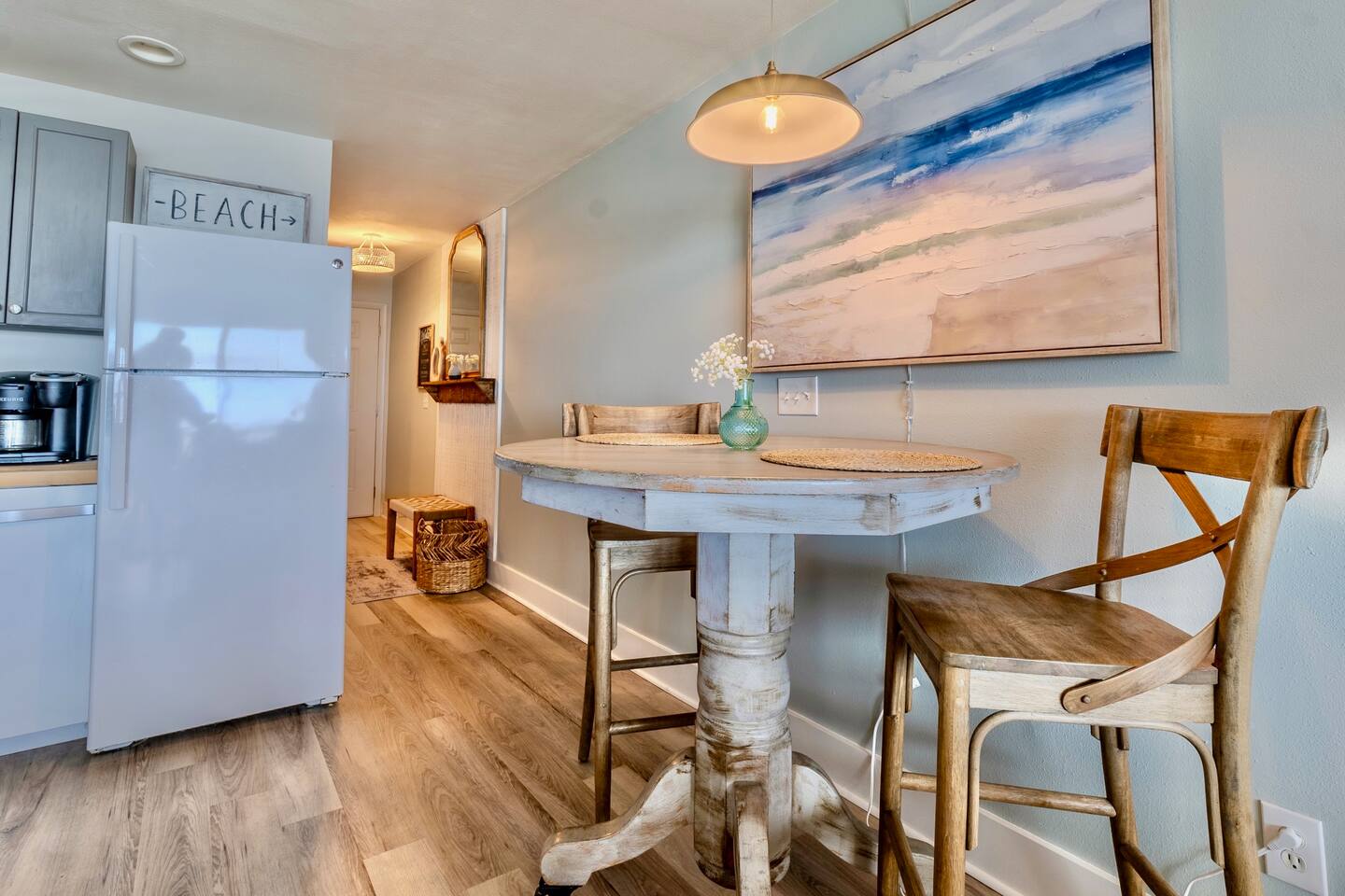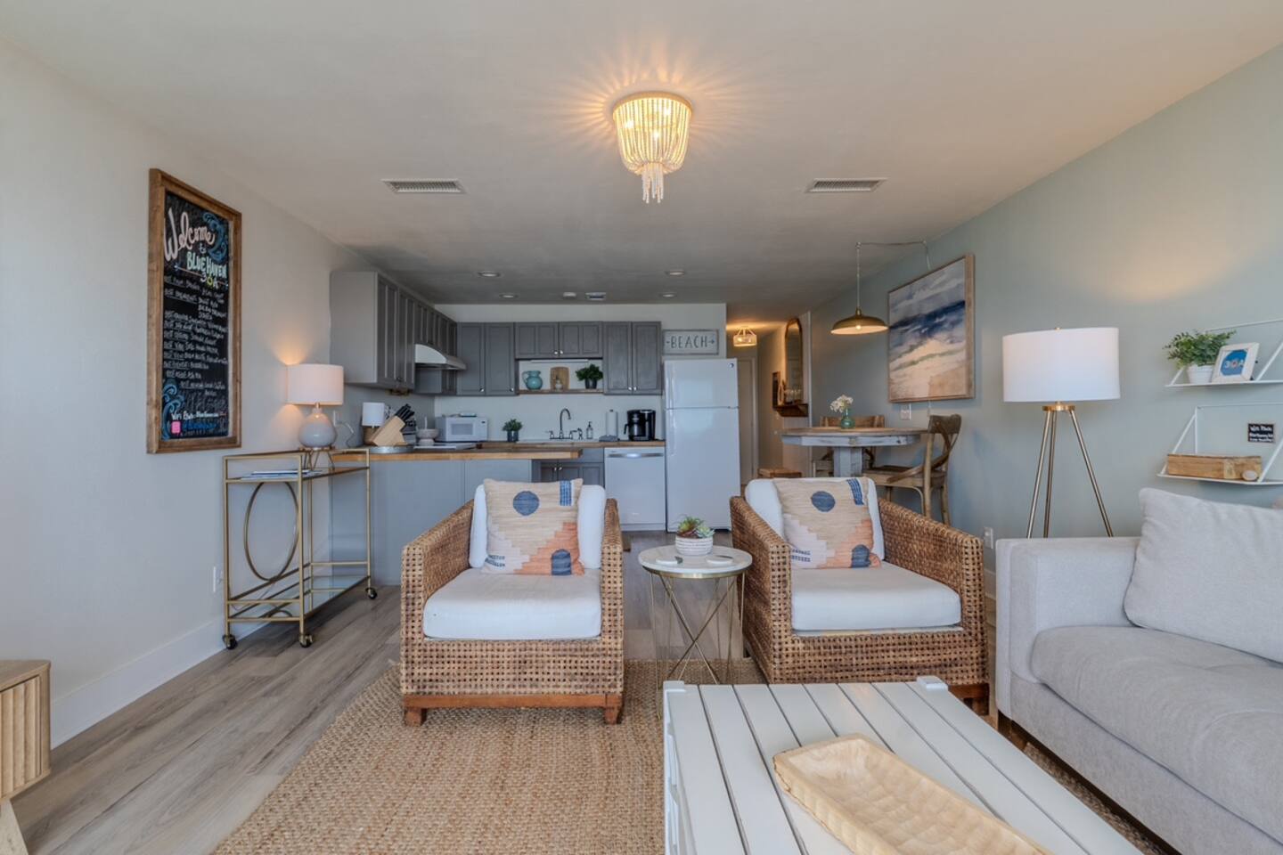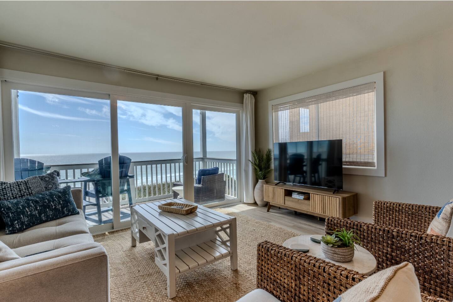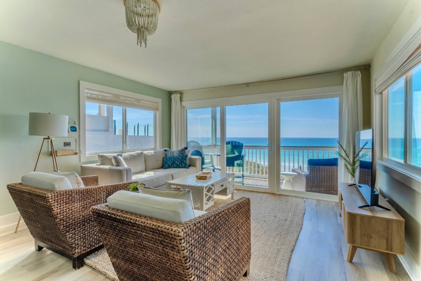 Immerse yourself in the best of 30A and Florida’s Gulf Coast @bluehaven30a. This newly renovated property is a beach lover’s dream!! Nestled between Alys and Watersound, this Gulf-front condo provides you with exclusive private beach access ensuring an intimate escape with FEWER CROWDS. Enjoy sun kissed ocean views from the kitchen, living area or private balcony overlooking the sand. Indulge in the newly furnished living space with a panoramic Gulf view, complemented by a big-screen smart TV featuring Hulu, DirecTV, Disney+, and Amazon Prime. The kitchen includes a Keurig coffee maker and is fully stocked with everything that you would need to dine in. Retreat to a new King sized bed with lux crisp linens. Close the blackout curtains and turn on the smart, wall mounted TV for tranquil nights. The faster you get here, the sooner you change your pace and unwind in your own private beach paradise. Book your stay at this newly renovated hidden gem. For more details, visuals and local recommendations, follow on Insta @bluehaven30a