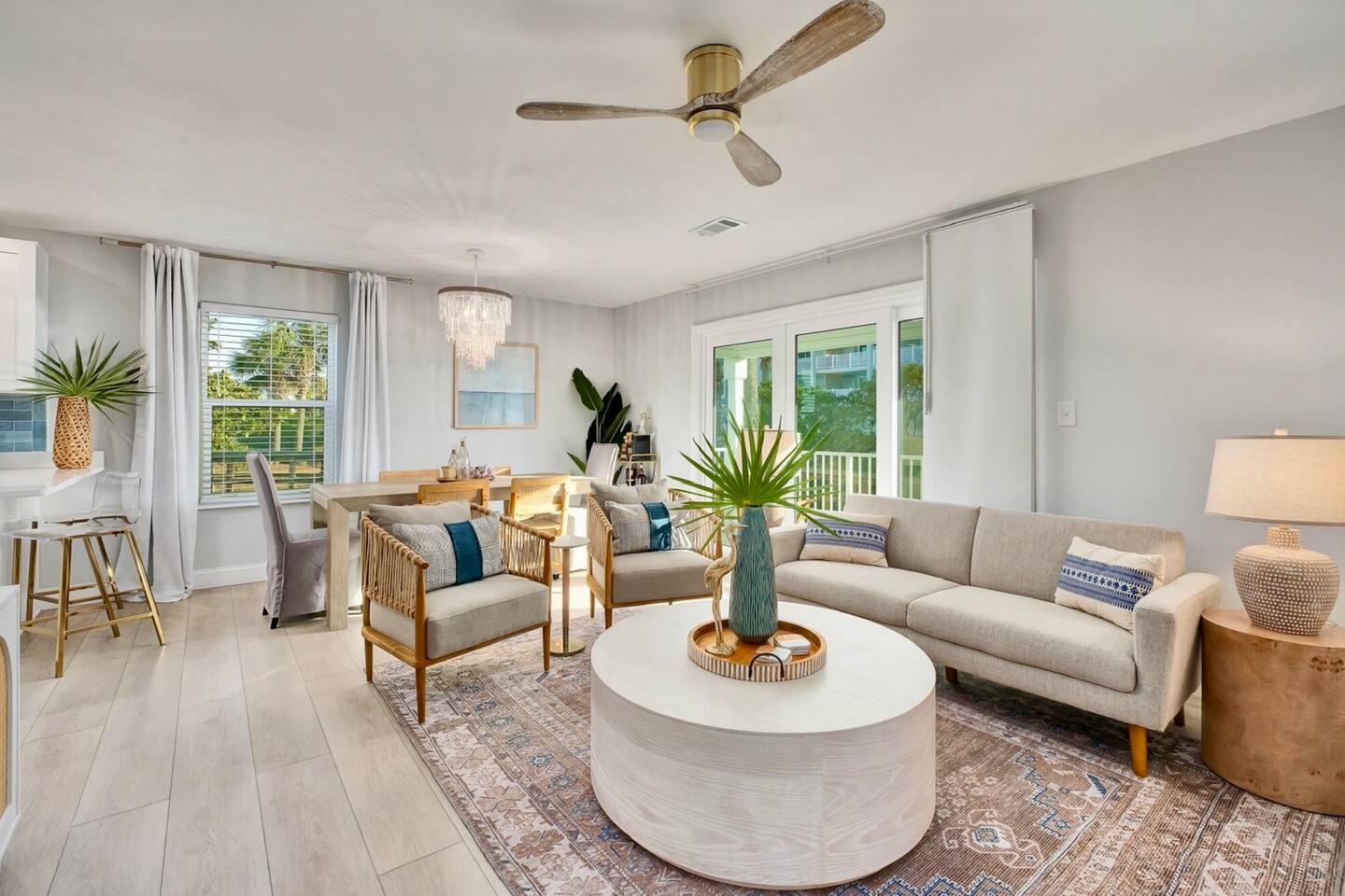 Beachside Villas – Renovated Condo with Gulf Views & Resort Amenities! Located south of 30A in Seagrove Beach, Beachside Villas is just 100 yards from the beach and next to Eastern Lake. Enjoy resort-style amenities, including two pools (one heated seasonally), tennis/pickleball courts, shuffleboard, and cornhole. This fully renovated 2BR/2BA condo offers incredible Gulf views from the living room and covered patio. The first-floor location provides easy access, and guests enjoy complimentary beach gear—chairs, towels, an umbrella, and a cooler. Beach Access (see additional photos for map): • Eastern Lake Beach Access (1.5 blocks) – Rare coastal dune lake with beach. Shuttle service runs March–October. • Sugar Dunes Access (90 steps) – Walk to the waterline, but beach area is private. • Walton Dunes Access (4-min bike ride) – Public beach with beach service. Shuttle service runs March–September. Beachside Villas guest have access to over 10 acres of beach and 1200 feet of coastline serviced via a private Beach Tolley and within walking distance. The Sugar Dunes Boardwalk immediately adjacent to Beachside Villas can be used to access the beach as well, where just 350 feet to the right of the boardwalk is 500 feet of owner managed beach that can be used from 9-4pm. Finally, every inch of Walton County coastline is 100% public for activities such as walking, jogging, swimming, skim boarding, surfing. The Beach Trolley runs from 9-5pm, from March 15* to September 15. Condo Features: • Sleeps 6 – King suite (TV, en suite bath) & guest room (2 full beds, TV, hall bath). • Gourmet kitchen – High-end appliances, fully stocked. • Dining for 6 + breakfast bar seating for 2. • In-unit laundry with washer & dryer. • Covered balcony – High-top dining for 4, lounge seating for 2, perfect sunset views. • Parking for 2 vehicles (No RVs/trailers/street parking). Nearby: • Walk or bike to Old Florida Fish House, Steamboat Grill, Beachy Bean Coffee Co., Greenway Station, & Buddy’s Seafood Market (all 5 minutes or less by bike). • Exclusive golf cart & bike rentals available through Redfish Rentals. Experience the best of Seagrove Beach with breathtaking views, modern comforts, and unbeatable location!